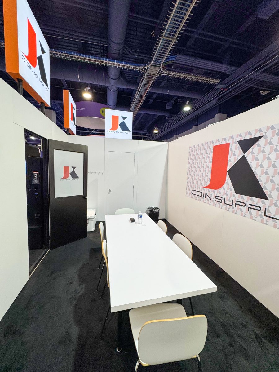 Our team handled the complete fabrication, logistics, and on-site installation, delivering a polished booth that effectively showcased JK Coin Supply’s products while providing an organized, welcoming environment for visitors.